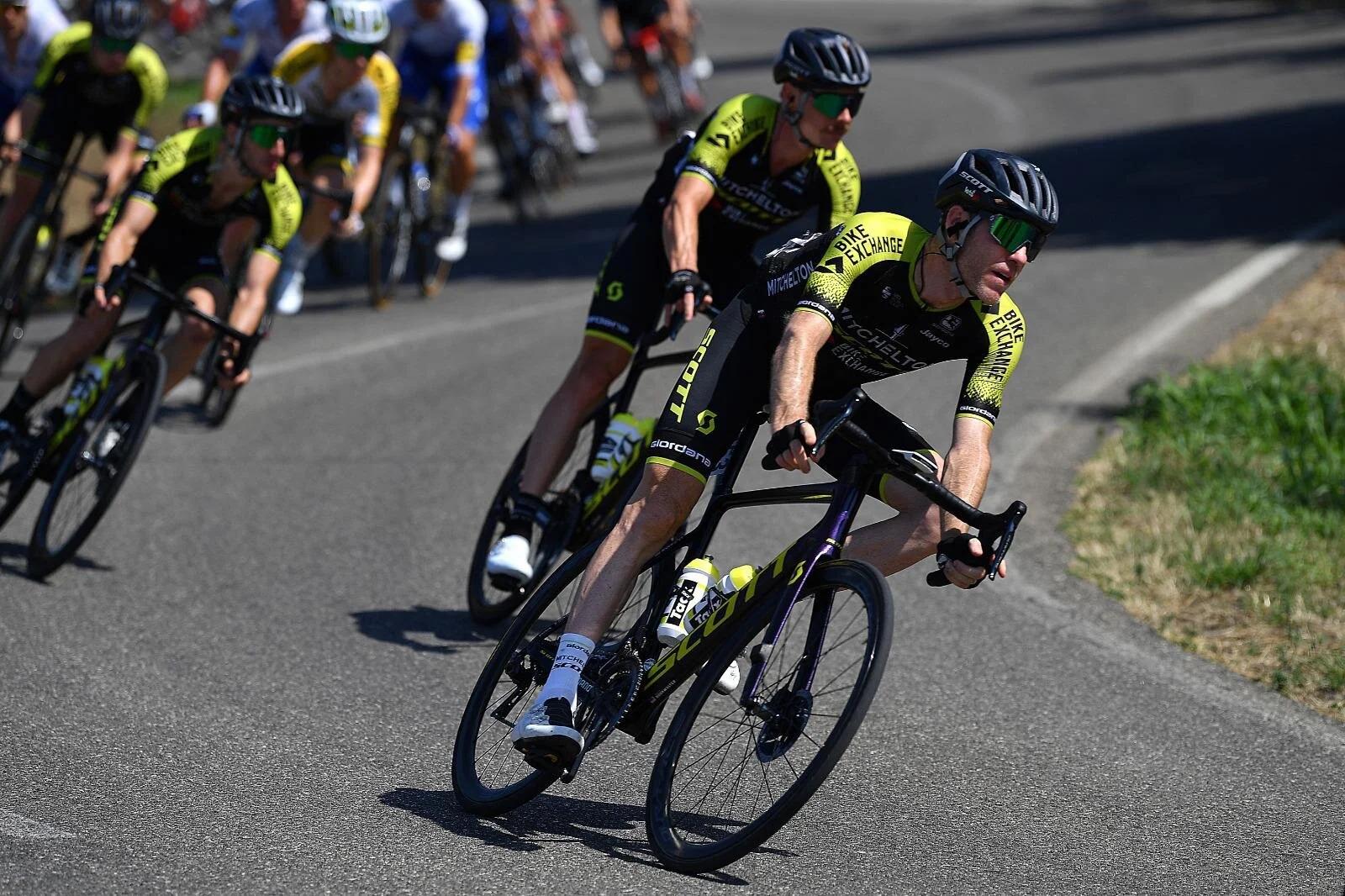 We had Eddy and Heppy chipping into the chase in the first half of the stage. Back in the bunch, I had plenty of time to get familiar riding for Simon. Things ramped up with almost a hundred kilometers to go as we headed into a large one-lap finishing circuit.